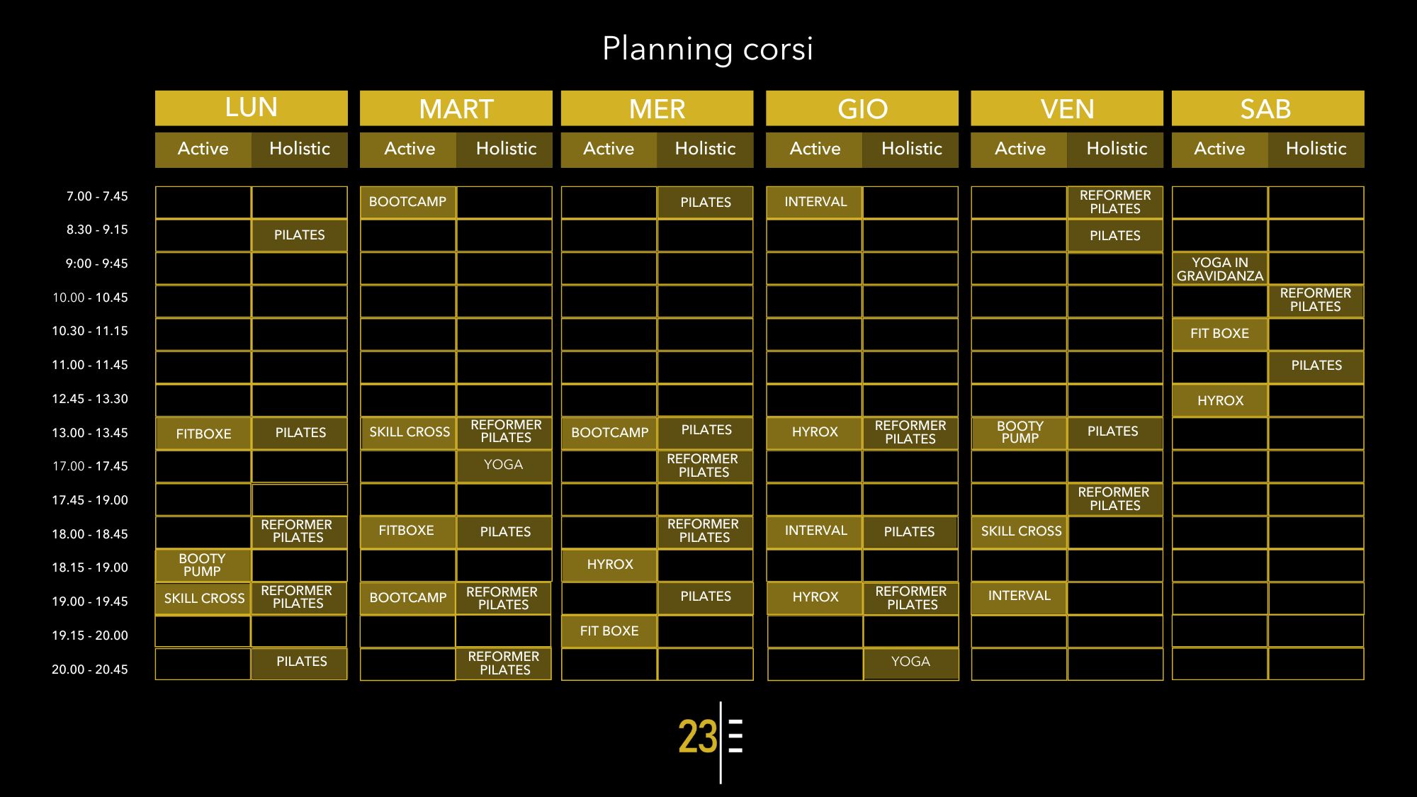 23|Eleven è anche una programazione di classi esclusive, da vivere in sala Active o in sala Holistic